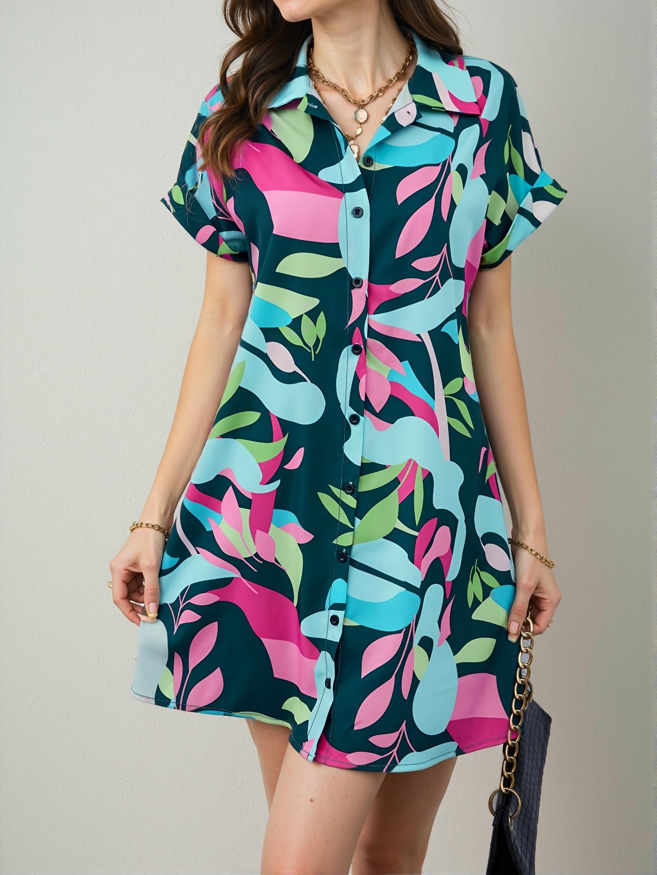 This Elegant Dark Green Breezaya Women’s Batwing Sleeve Button Down Shirt Dress is the perfect attire for vacation and beach getaways during spring and summer. With chic, classy, and trendy fashion style, it’s designed to dress to impress. Featuring a stylish shirt collar and batwing sleeves, this dress offers a relaxed fit that flatters all body types while ensuring comfort. The all-over print pattern adds a touch of boho flair, making it a versatile choice for trendy outings or relaxed beach days.